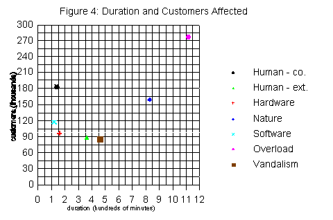 caused the shortest duration outages. Figure 4 compares the duration and customers affected for the